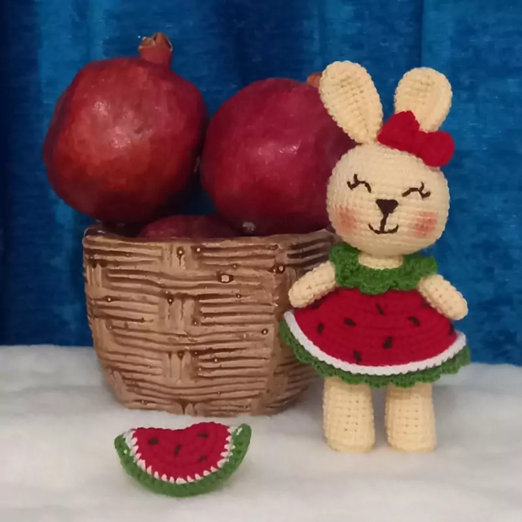 عروسک بافتنی خرگوش شب یلدا،17سانتی بافت بارنگ دلخواه شما