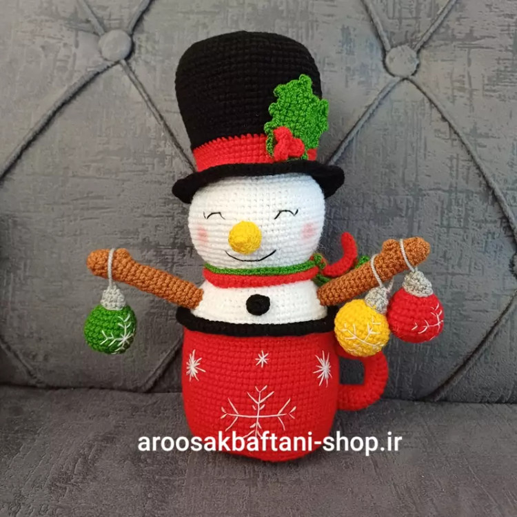 ماگ بافتنی آدم برفی 20سانتی بافت بارنگ دلخواه شما
