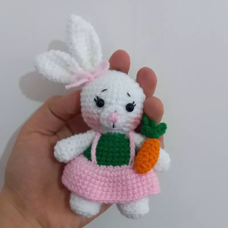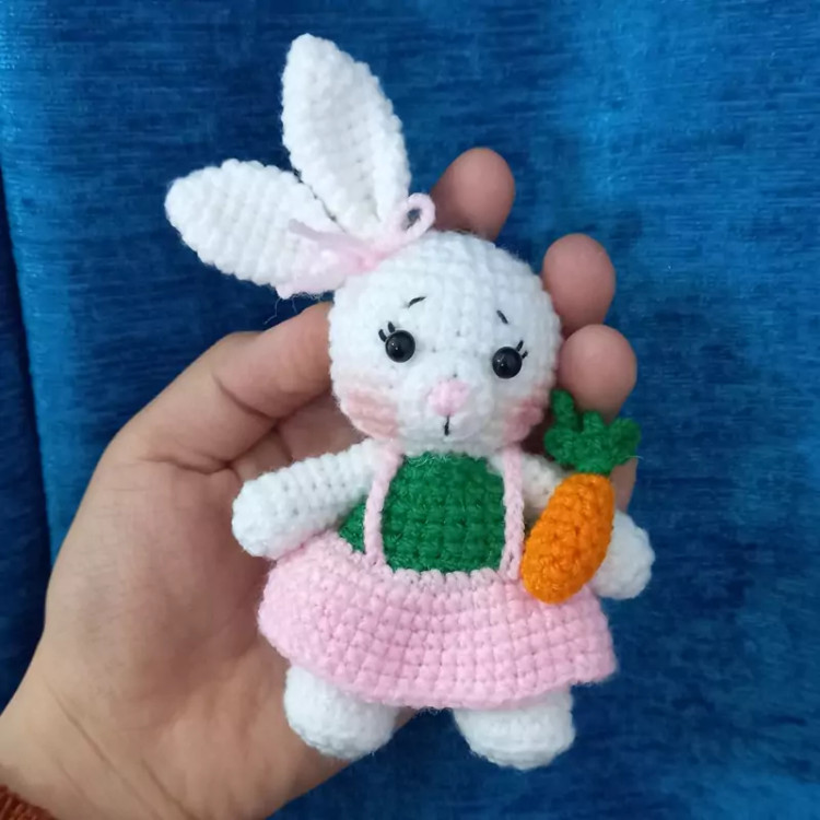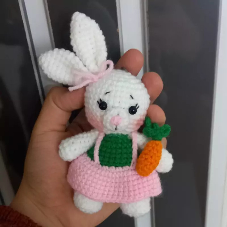 عروسک بافتنی خرگوش هویج دار14سانتی بافت به رنگ دلخواه شما