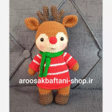 عروسک بافتنی گوزن قهوه ای20سانتی عیدبافت بارنگ دلخواه شما
