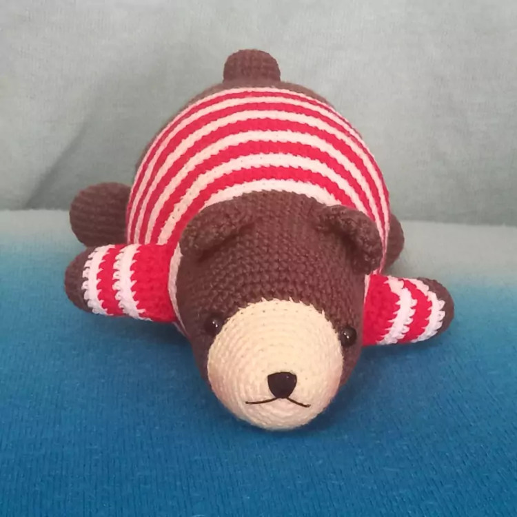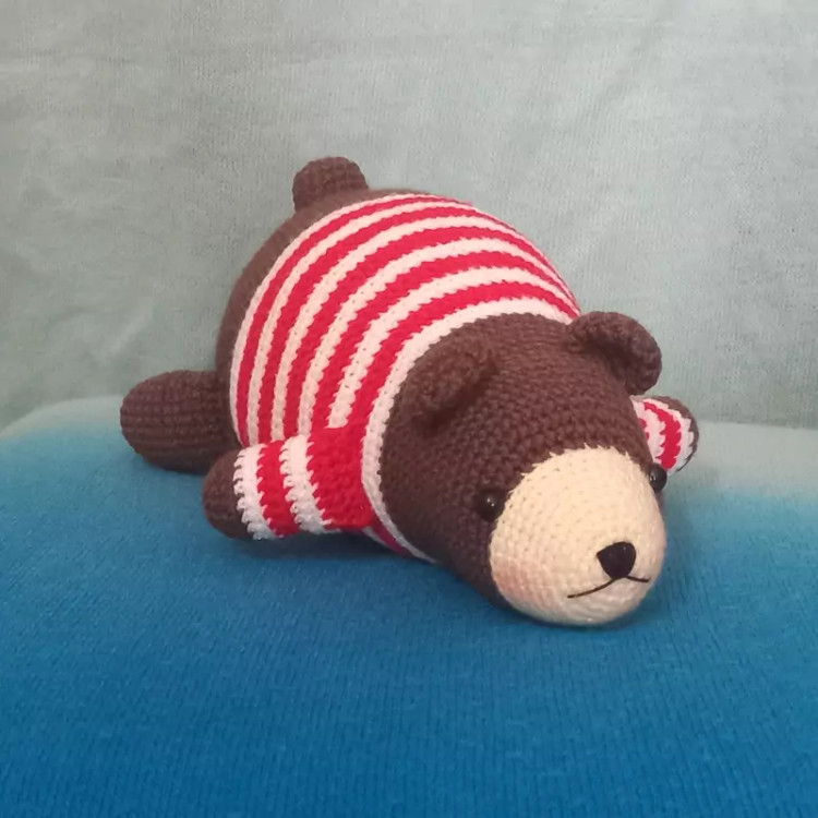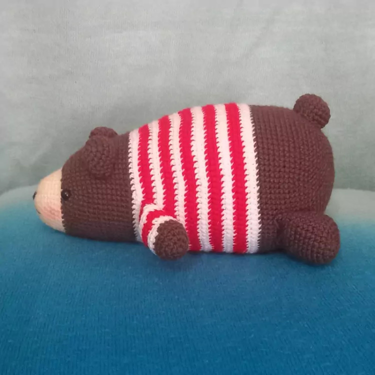 عروسک بافتنی خرس تنبلک 20سانتی بافت بارنگ دلخواه شما