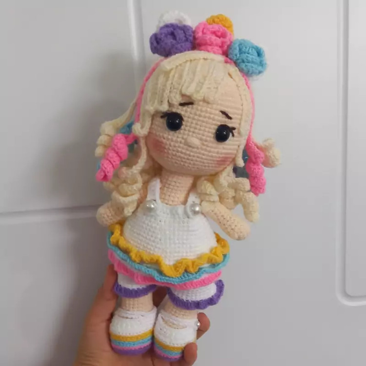 عروسک بافتنی دختر ویولتا (یونیکورن )30سانتی بافت بارنگ دلخواه شما