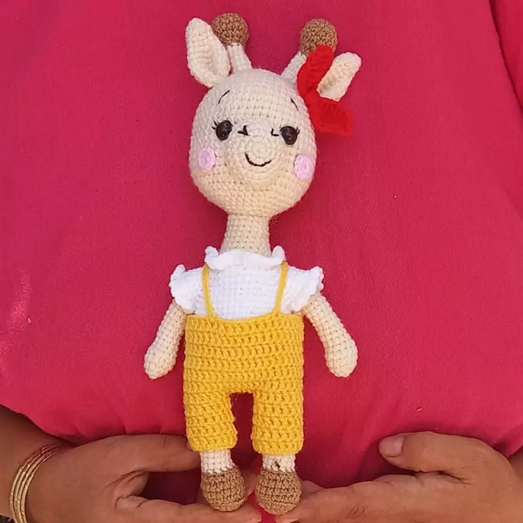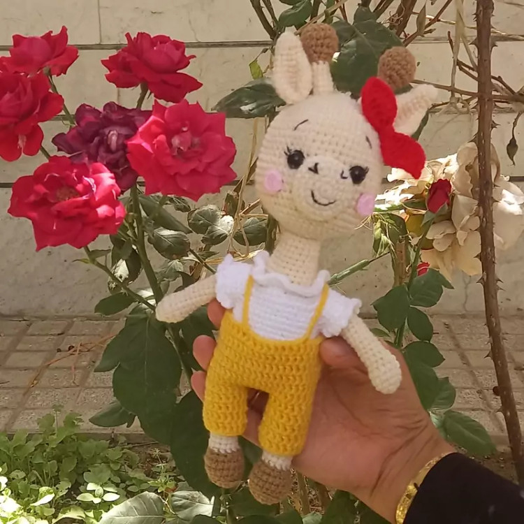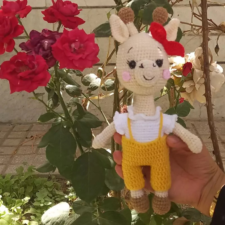 عروسک بافتنی زرافه زرنگ 27سانتی بافت بارنگ دلخواه شما