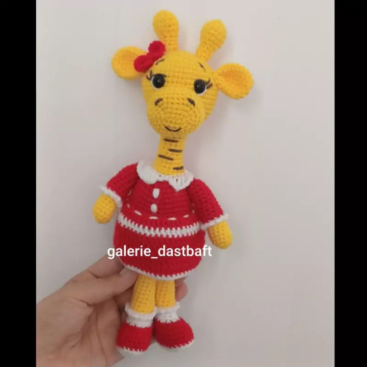 عروسک بافتنی زرافه ناز25سانتی بافت بارنگ دلخواه شما
