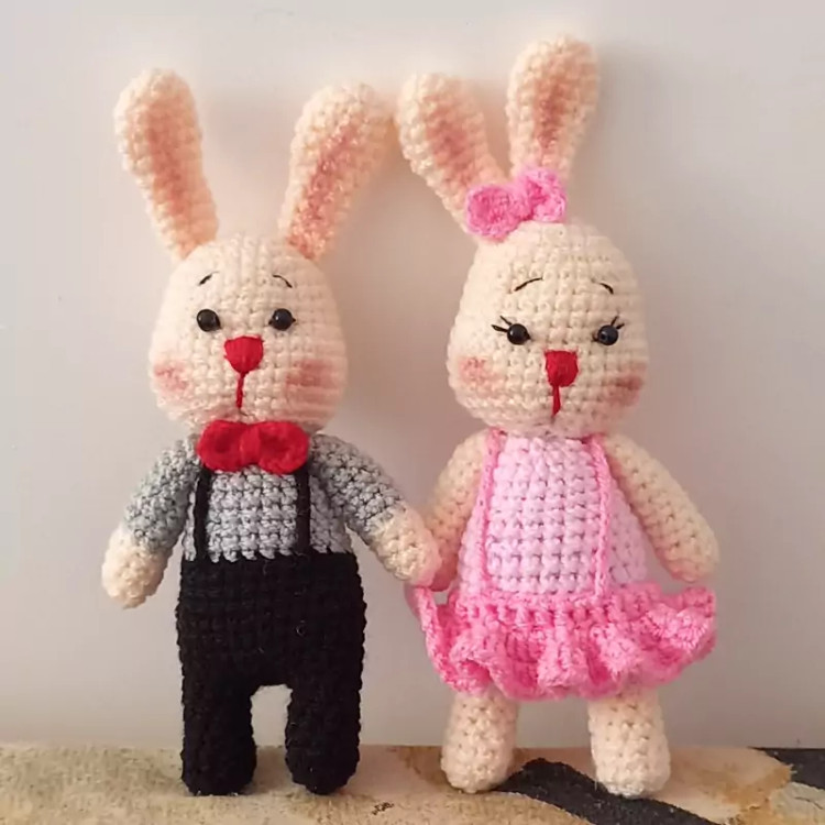 عروسک بافتنی خرگوش لپ گلی جفتی ۴۳۸تومن17سانتی