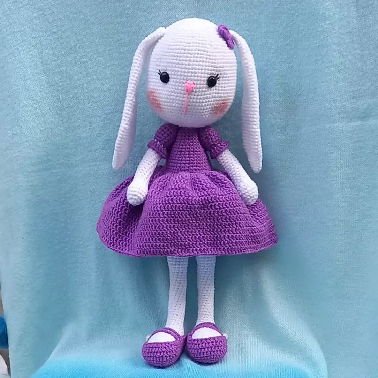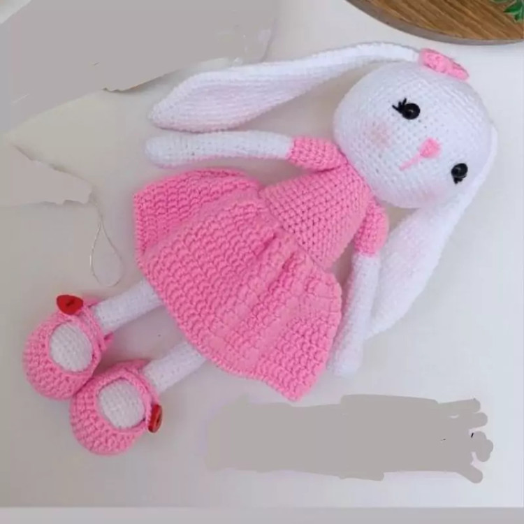 عروسک بافتنی خرگوش وانیلی 40سانتی بافت به رنگ دلخواه شما