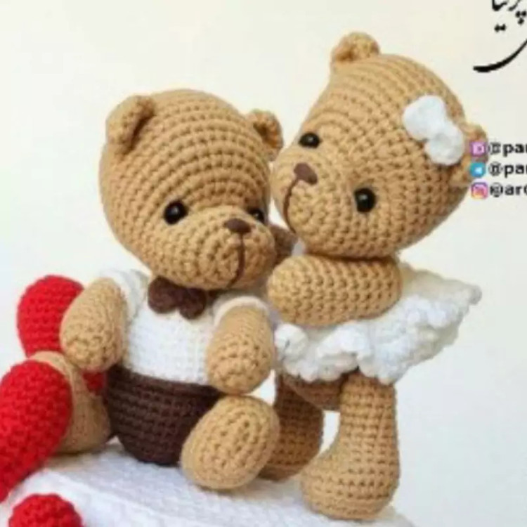 عروسک بافتنی خرسهای عاشق دونه ای۲۰۰تومن13سانتی بافت بارنگ دلخواه شما