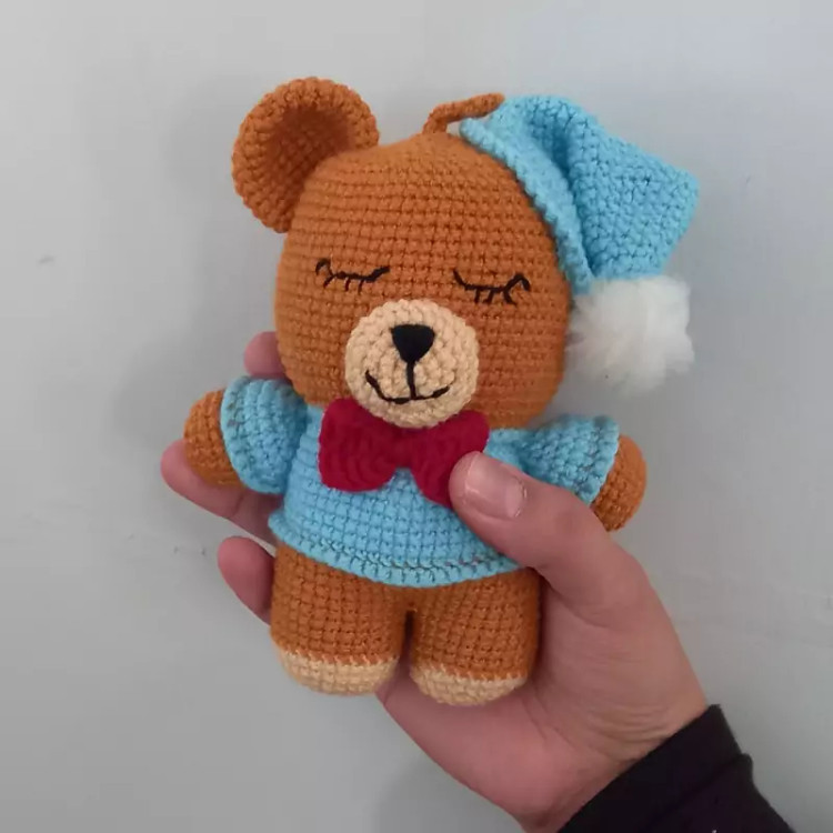 عروسک بافتنی خوابالو18سانتی بافت بارنگ دلخواه شما