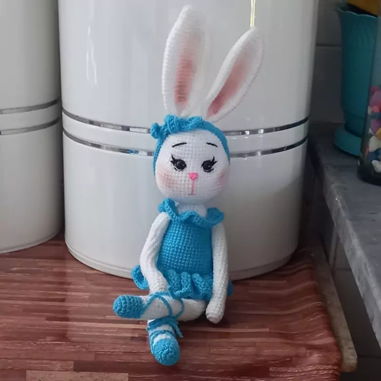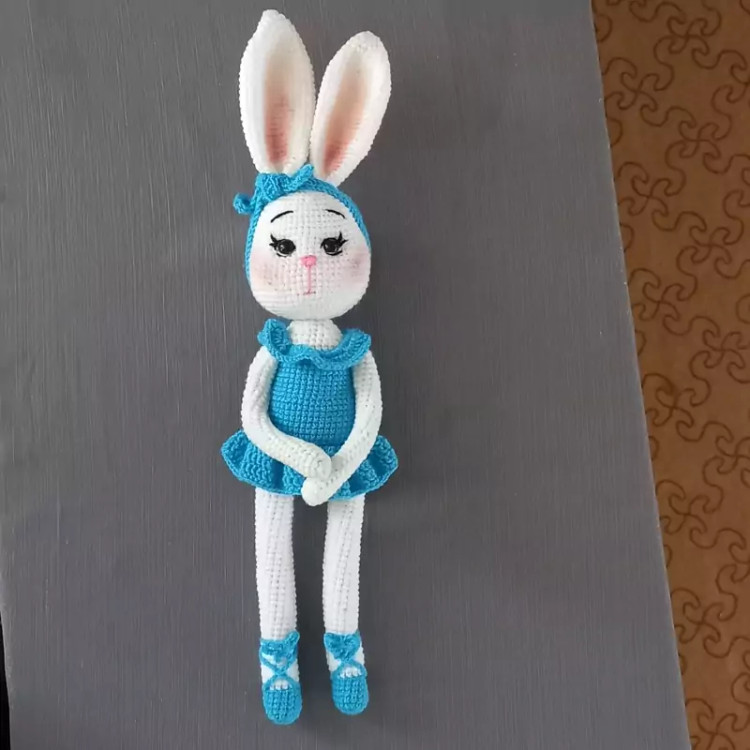 عروسک بافتنی خرگوش بالرین باگوش 40سانت بافت بارنگ دلخواه شما