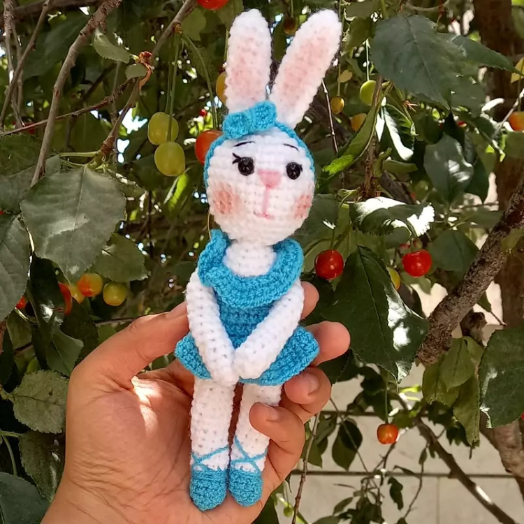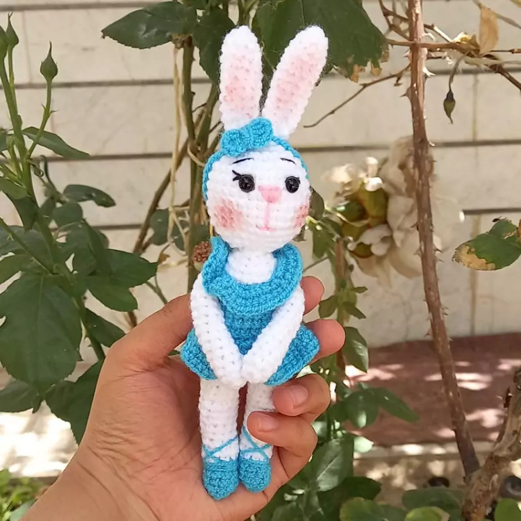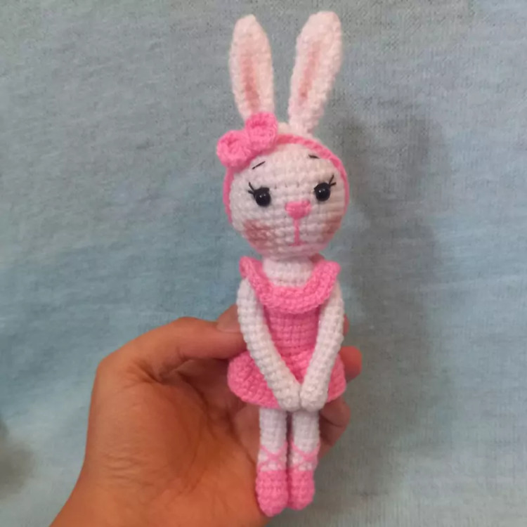 عروسک بافتنی خرگوش بالرین کوچولو باگوش 17سانت بافت بارنگ دلخواه شما
