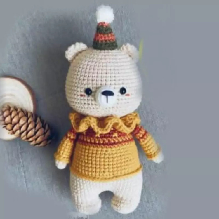 عروسک بافتنی خرس تولد15سانتی بافت بارنگ دلخواه شما
