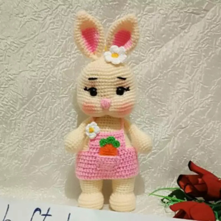 عروسک بافتنی خرگوش بانمک دختر15سانتی بافت بارنگ دلخواه شما