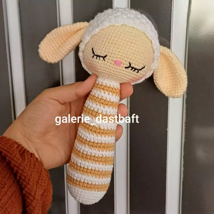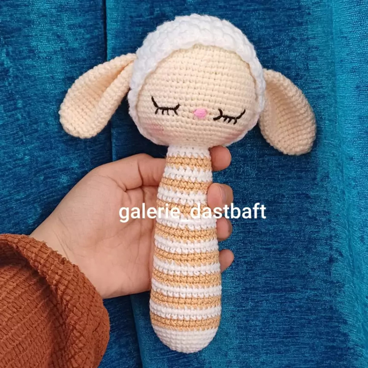 عروسک بافتنی آغوشی بره خوابالومناسب سیسمونی22سانتی بارنگ دلخواه