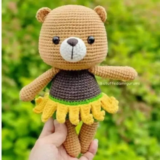 عروسک بافتنی خرس آفتاب گردان 20سانتی بافت بارنگ دلخواه شما
