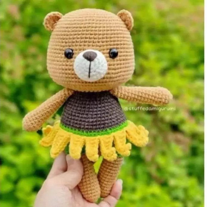 عروسک خرس آفتاب گردان 20سانتی بافتنی بافت بارنگ دلخواه شما