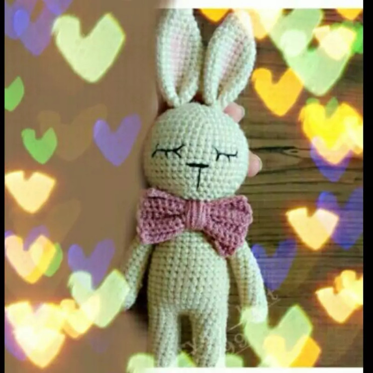 عروسک بافتنی خرگوش خوابالو ناز20سانتی بافت بارنگ دلخواه شما