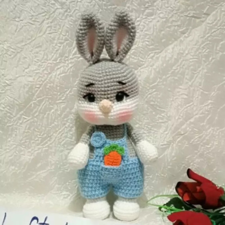 عروسک بافتنی خرگوش بانمک15سانتی پسربافت بارنگ دلخواه شما