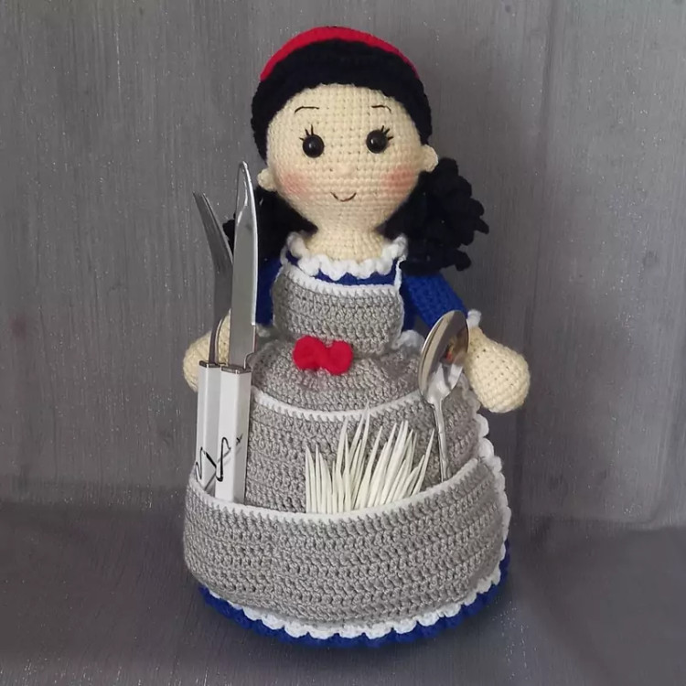 جای لوازم آشپزخانه بافتنی(قاشق،چنگال،خلال دندان) 26سانتی بافت با رنگ دلخواه شما