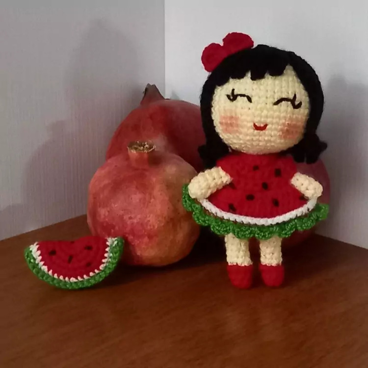 عروسک بافتنی یلداخانوم 13سانتی بافت بارنگ دلخواه شما