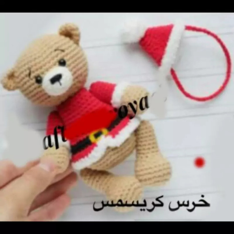 عروسک بافتنی خرس عید کلاه دار15سانتی بافت بارنگ دلخواه شما