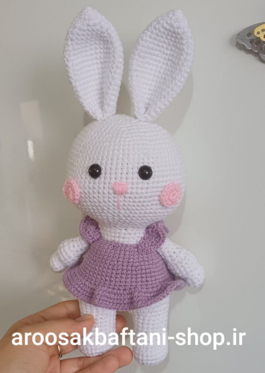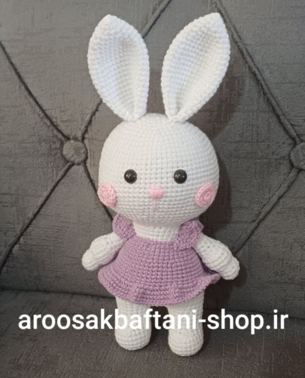 عروسک بافتنی خرگوش موچی25سانتی بافت بارنگ دلخواه شما