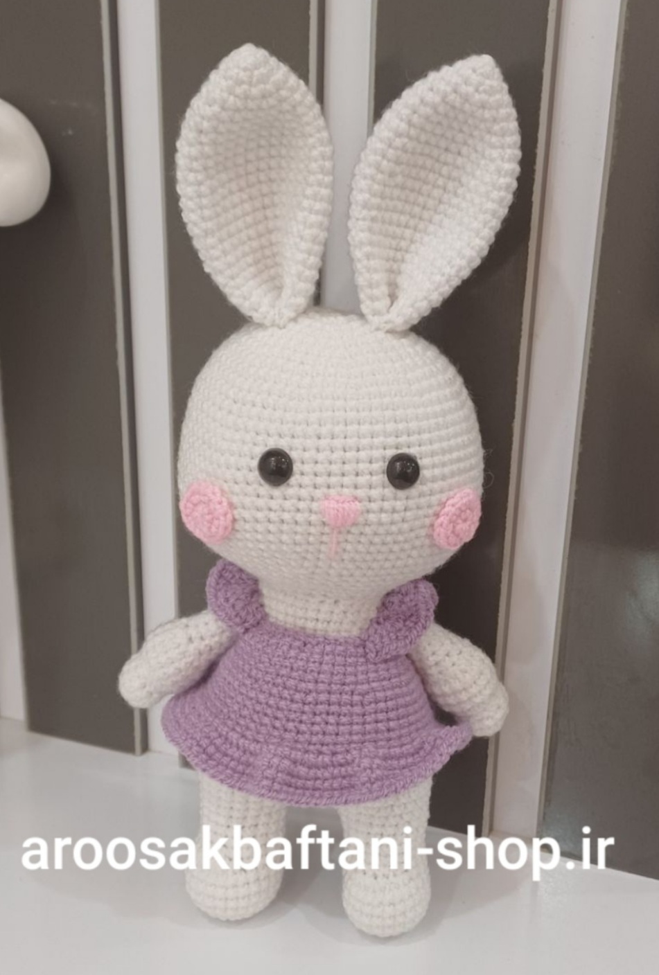 عروسک بافتنی خرگوش موچی25سانتی بافت بارنگ دلخواه شما