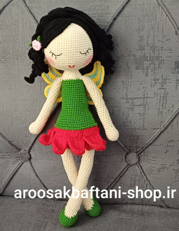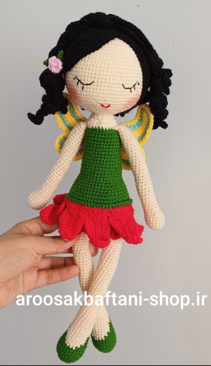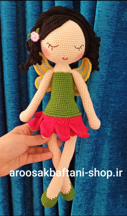 عروسک دختربافتنی فرشته خانم ۳۵سانتی بافت بارنگ دلخواه شما