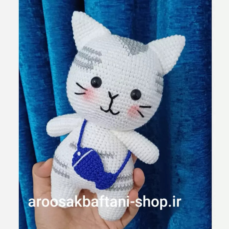 عروسک بافتنی گربه تابی16سانتی بافت بارنگ دلخواه شما