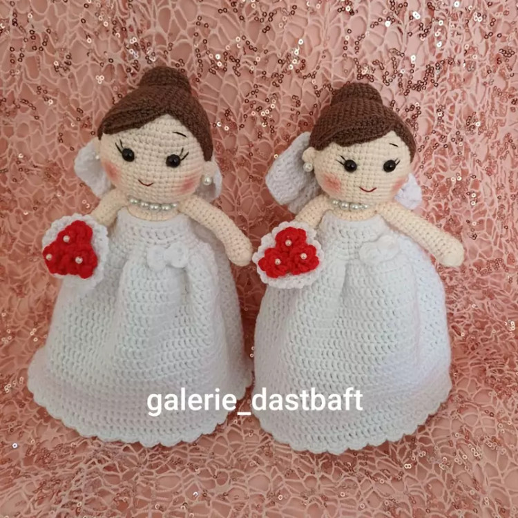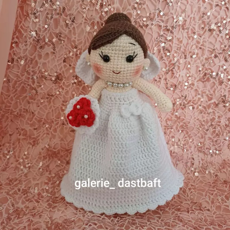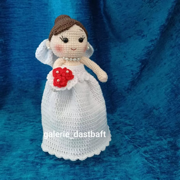 عروسک بافتنی عروس 23سانتی بافت بارنگ دلخواه شما