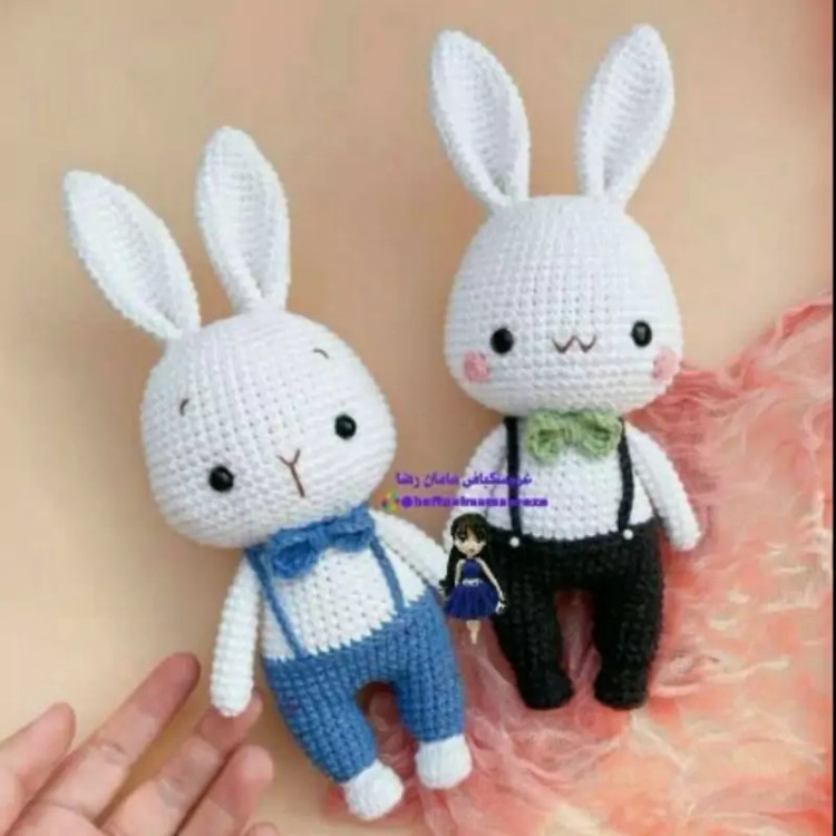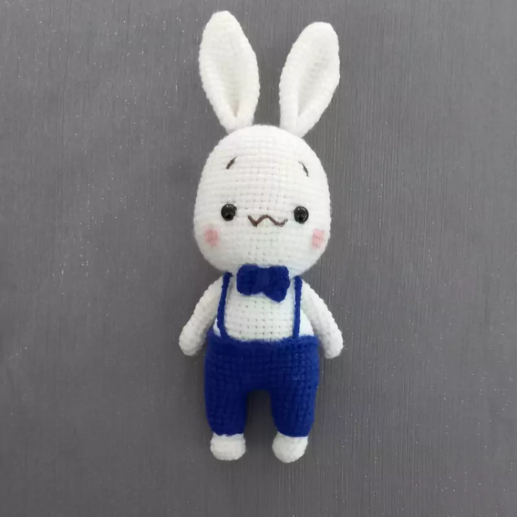 عروسک بافتنی خرگوش پسر21سانتی بافت بارنگ دلخواه شما