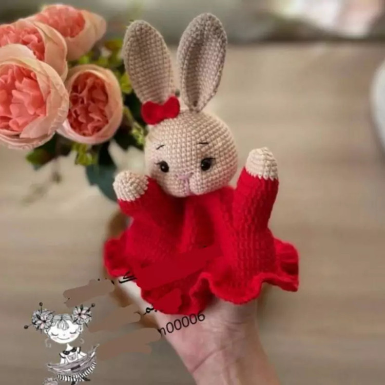 عروسک بافتنی خرگوش نمایشی15سانتی بافت بارنگ دلخواه شما