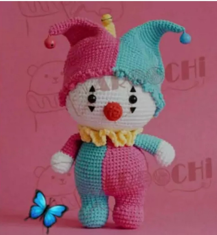 عروسک بافتنی دلقک 18سانتی بافت با رنگ دلخواه شما