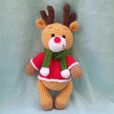 عروسک بافتنی گوزن عید18سانتی بافت بارنگ دلخواه شما