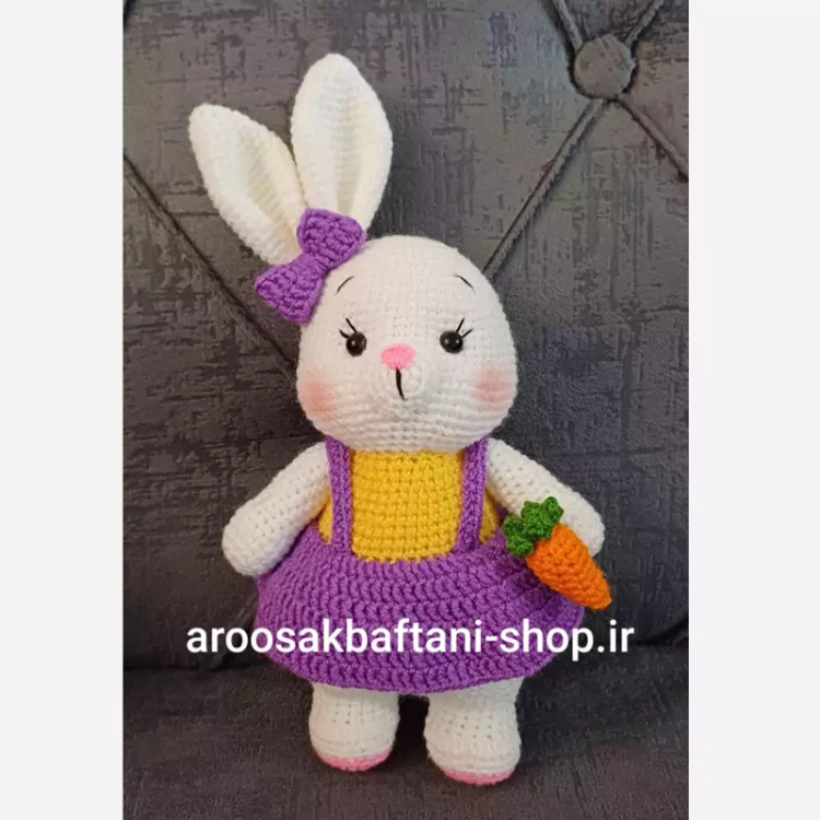 عروسک خرگوش تپلی بافتنی باگوش 26سانت بافت بارنگ دلخواه شما