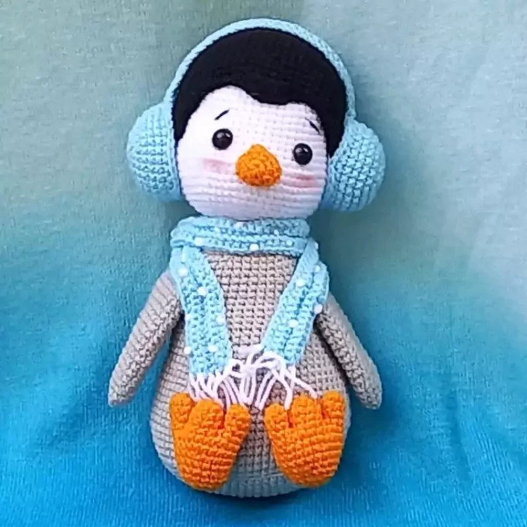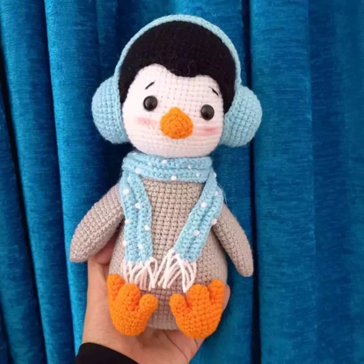 عروسک پنگوئن هدفون داربافتنی 20سانتی بافت بارنگ دلخواه شما.