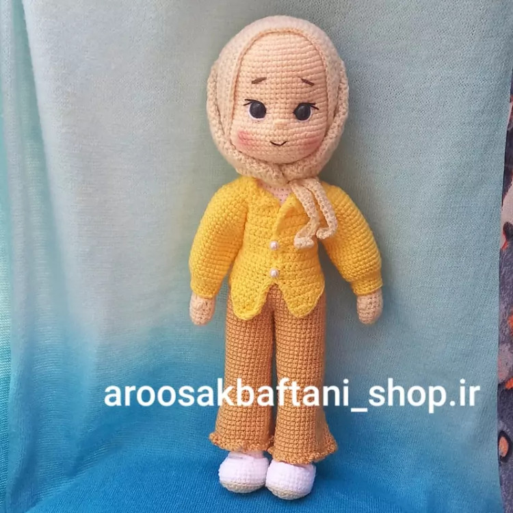 عروسک دخترنازنین خانم بافتنی32سانتی بافت بارنگ دلخواه شما.
