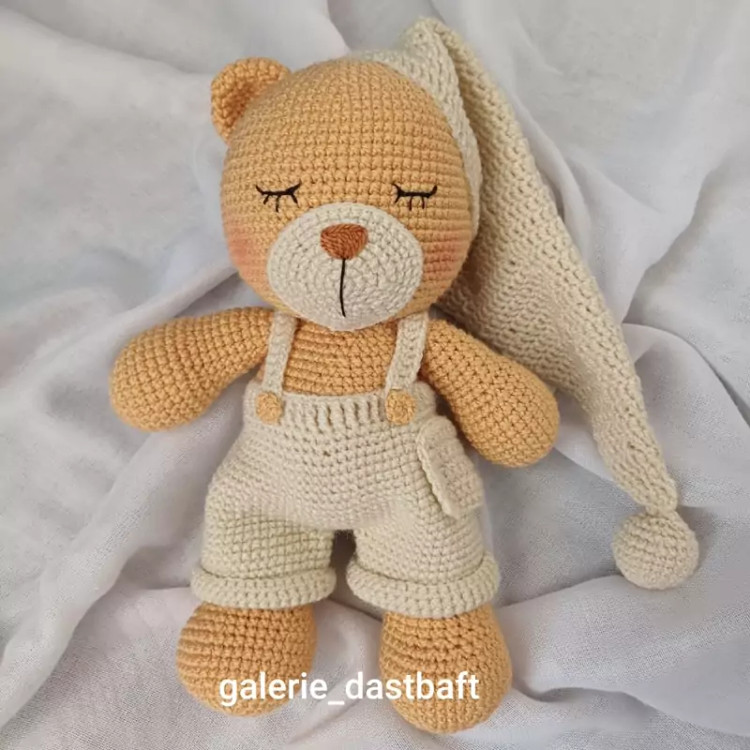 عروسک بافتنی خرس سیسمونی22سانتی بافت به رنگ دلخواه شما