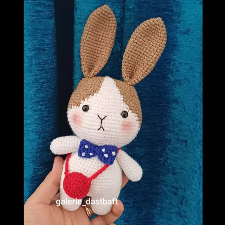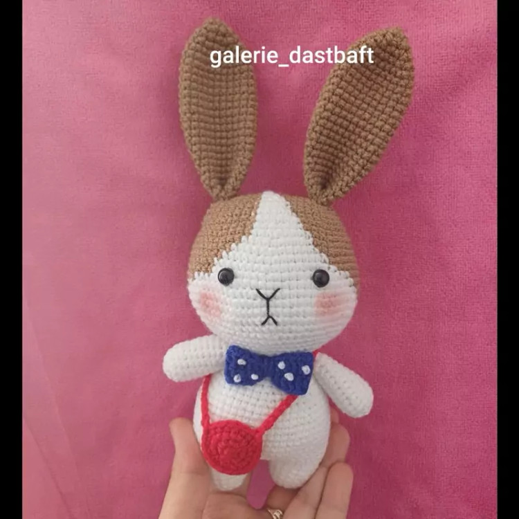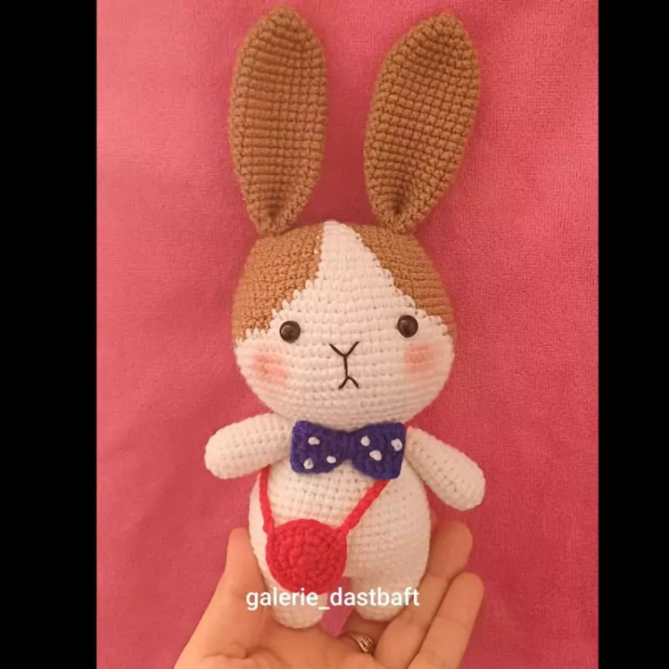 عروسک خرگوش خالداربافتنی20سانتی بافت بارنگ دلخواه شما