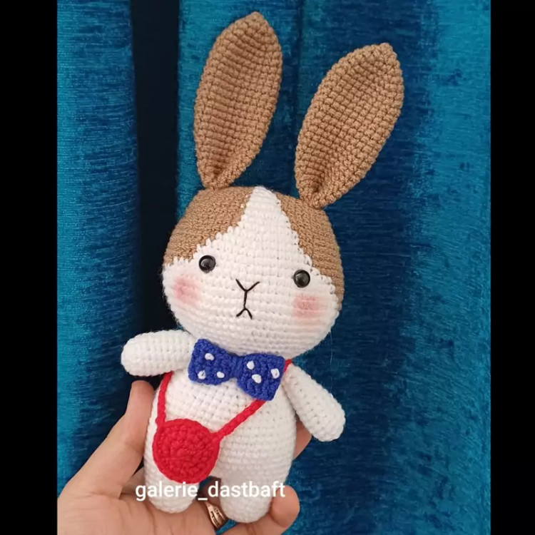 عروسک بافتنی خرگوش خالدار20سانتی بافت بارنگ دلخواه شما