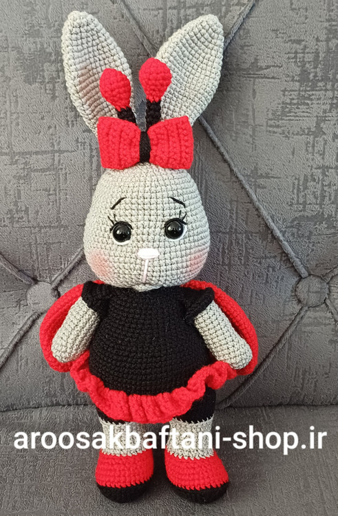 عروسک بافتنی خرگوش کفشدوزکی29سانتی بافت بارنگ دلخواه شما