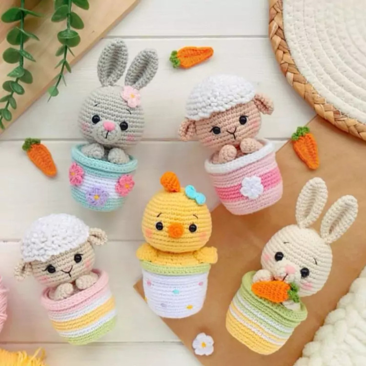 عروسک بافتنی حیوانات گلدونی هرکدام349تومن بافت با رنگ دلخواه شما