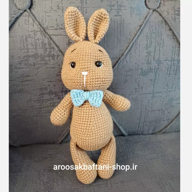 عروسک خرگوش پسربافتنی23 سانتی بافت بارنگ دلخواه شما