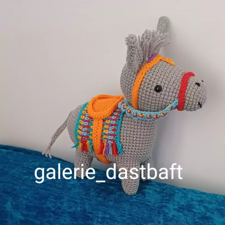 عروسک بافتنی الاغ بلا15سانتی بافت بارنگ دلخواه شما