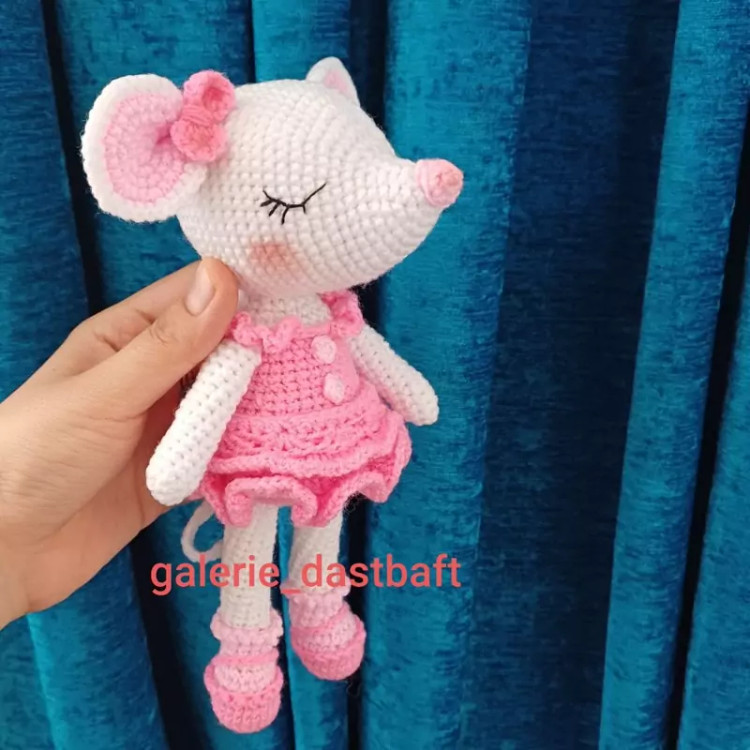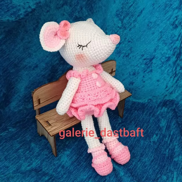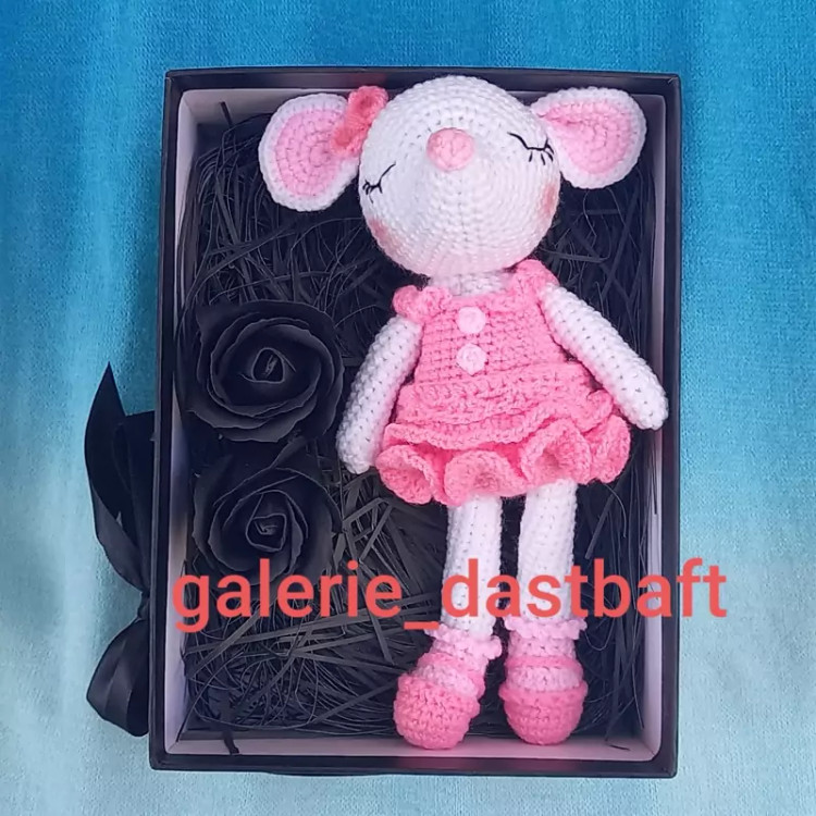 عروسک بافتنی موش رمانتیک20سانتی بافت بارنگ دلخواه شما