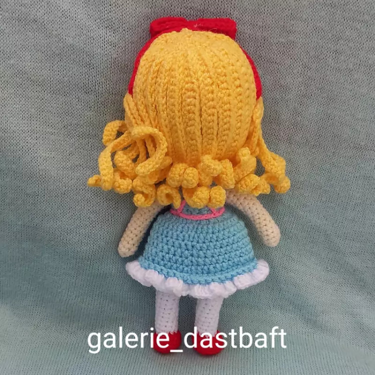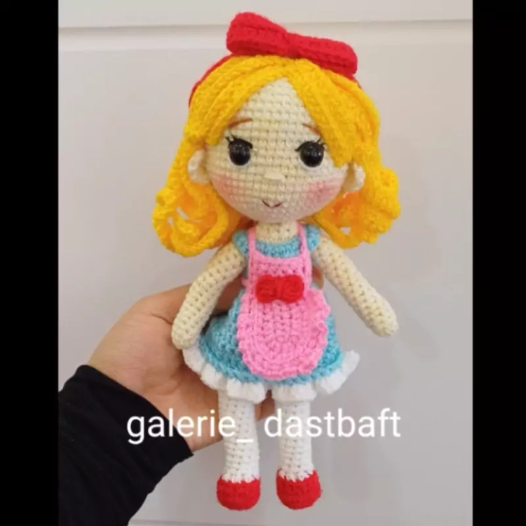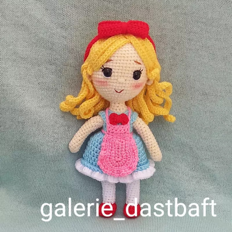 عروسک بافتنی دختر آلیس22سانتی بافت بارنگ دلخواه شما