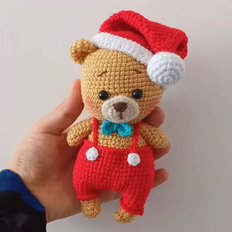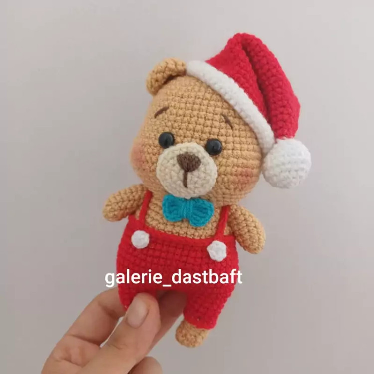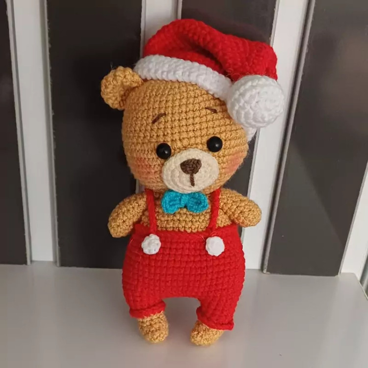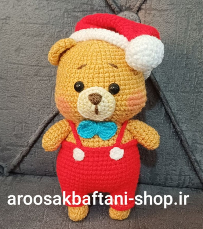 عروسک بافتنی خرس کلاه دارعید17سانتی بافت بارنگ دلخواه شما