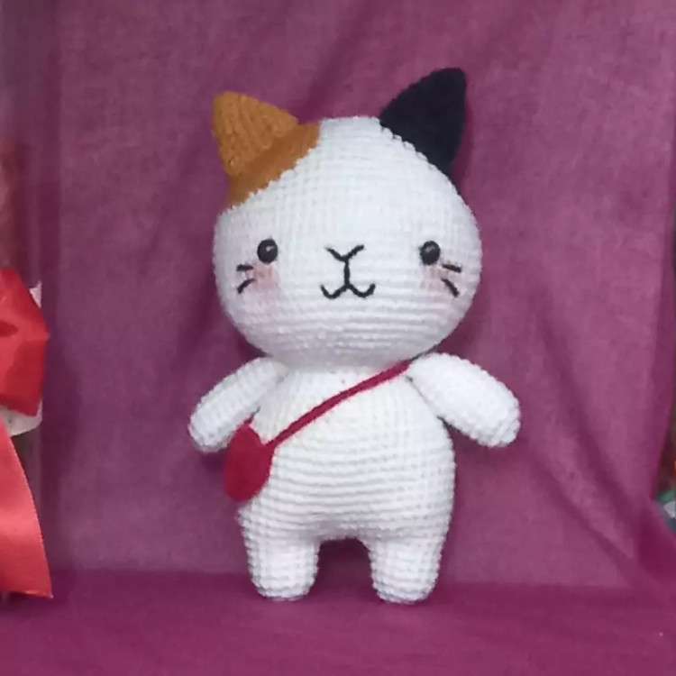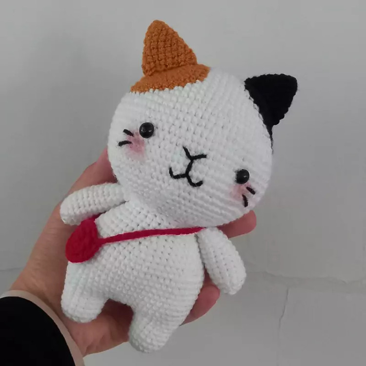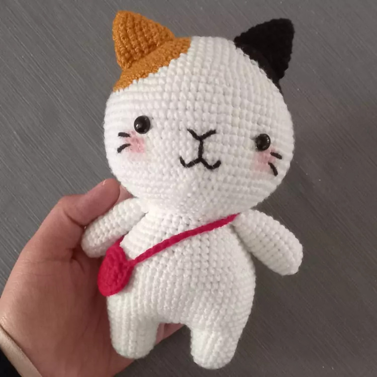 عروسک بافتنی گربه ملوس16سانتی بافت بارنگ دلخواه شما