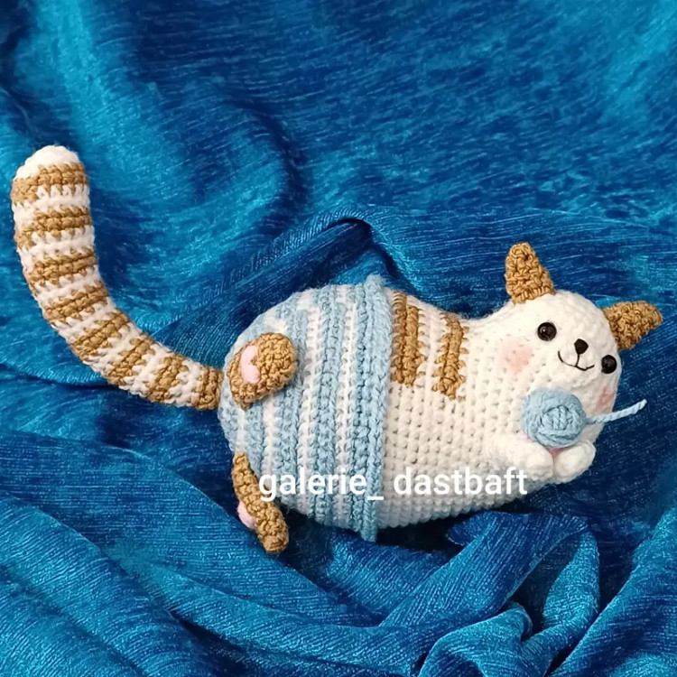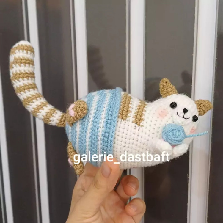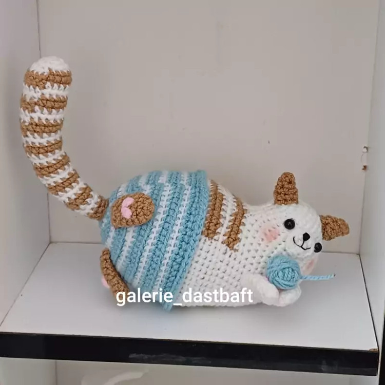 عروسک بافتنی گربه خپل بادم 20سانت بافت بارنگ دلخواه شما