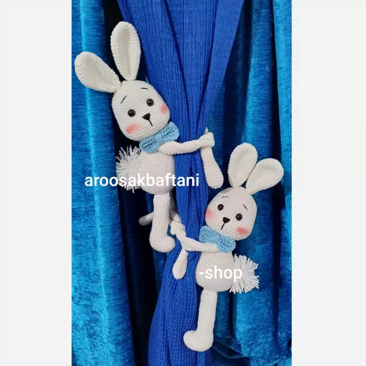 عروسک بافتنی خرگوش پرده جمع کن فروش دونه ای349تومن 25سانتی بافت با رنگ دلخواه شما