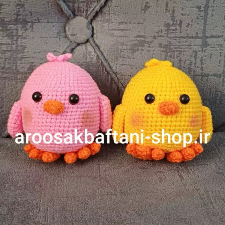 عروسک بافتنی جوجه بامزه8سانتی بافت بارنگ دلخواه شما